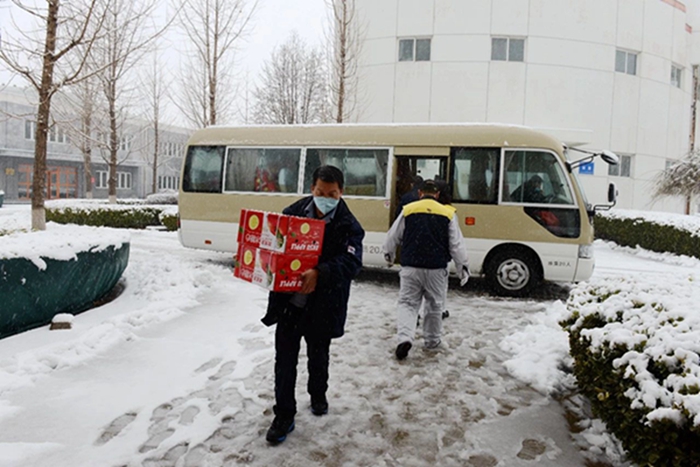 2月14日,北京普降大雪,北化集團(tuán)工會(huì)、宣傳部安排三名同志,集團(tuán)辦公室安排經(jīng)驗(yàn)豐富的駕駛員,冒著紛飛的大雪,滿載慰問品,專程前往華騰化工園區(qū)和華騰橡塑公司進(jìn)行走訪慰問,為戰(zhàn)斗在疫情防控和復(fù)工復(fù)產(chǎn)一線的干部職工送上集團(tuán)黨委、工會(huì)“娘家人”貼心的關(guān)懷和溫暖。