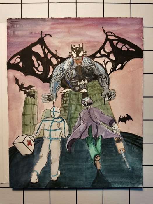 而眼下,疫情急。逆行者,英雄氣。贊白衣天使,胸懷大愛。救死扶傷為己任,臨危受命擔(dān)道義。似鐘馗、打鬼降妖魔,撼天地。