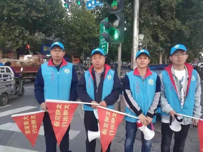 大家時而引導(dǎo)轉(zhuǎn)彎車輛禮讓斑馬線行人,時而提醒行人紅燈時在規(guī)定區(qū)域內(nèi)停留,時而對非機動車越線停靠和行人橫穿馬路等行為進行及時勸導(dǎo),從而引導(dǎo)市民養(yǎng)成文明交通習(xí)慣。