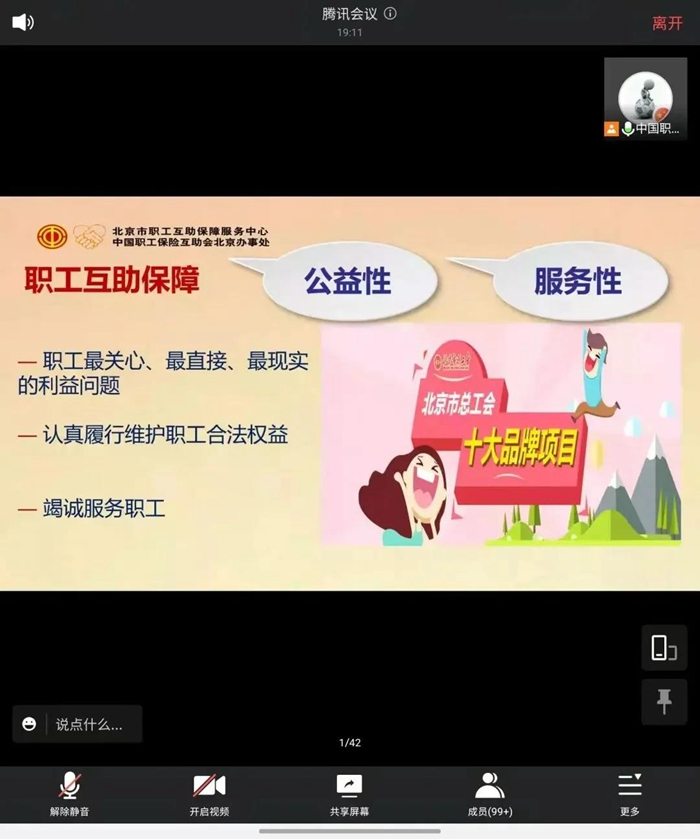 本次培訓邀請了中國職工保險互助會北京辦事處講師團隊成員王爽老師授課。主要結合職防院職工互助保障工作實際,從會費型互助保障活動、公益型互助保障計劃、理賠注意事項及案例剖析解讀等多個方面進行詳細解讀。