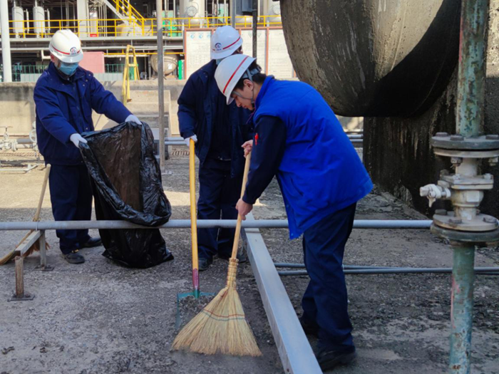 此次活動充分結合安全生產、垃圾分類等重點工作,組織團員青年開展公益性勞動,對公司生產現場溶劑裝置區、罐區以及控制室北側走廊區域進行全面清潔。