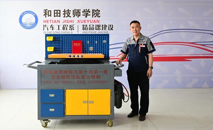 姚志剛老師在和田技師學院汽車系精品課建設中,先后編寫了《汽車發動機構造與維修》《汽車發動機構造工作頁》等教材。他還和其他援疆老師一起開發了智能安全升降機。同時,在項目推進過程中,深入了解本校老師們的專業提升需求,做到精準幫扶。