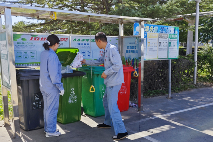 中秋國慶“雙節”剛過,化工廠組織干部職工在辦公樓周邊桶站,開展“我的垃圾我來分”活動。