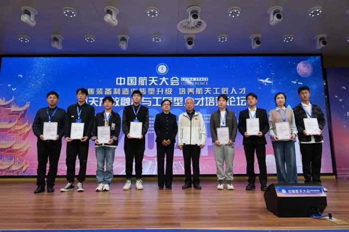 “五一”勞動節(jié)前夕,在武漢召開的中國航天大會“全國職業(yè)院校科普衛(wèi)星研制工程邀請賽”頒獎儀式上,中國職業(yè)技術(shù)教育學(xué)會會長、教育部原副部長魯昕為技師學(xué)院獲獎選手代表邱世龍頒獎,并與中國運載火箭技術(shù)研究院龍樂豪院士一同和獲獎選手合影留念。