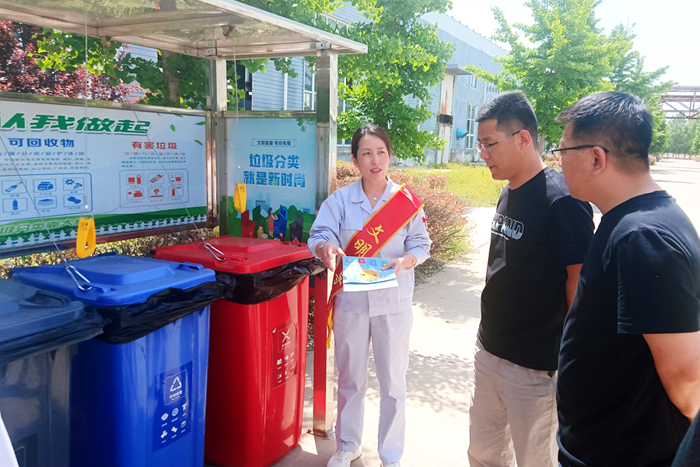 華騰化工黨總支加強工作統籌,專門組織成立生活垃圾分類入企宣傳小組,在推進自身工作開展的同時,專門走進6家入駐單位,進行了生活垃圾分類知識宣講,發放宣傳材料,對生活垃圾分類桶使用情況進行現場檢查和指導;通過公司微信公眾號大力宣傳生活垃圾分類知識;在園區內懸掛宣傳條幅,積極營造線上線下多渠道、全覆蓋的宣傳引導氛圍。