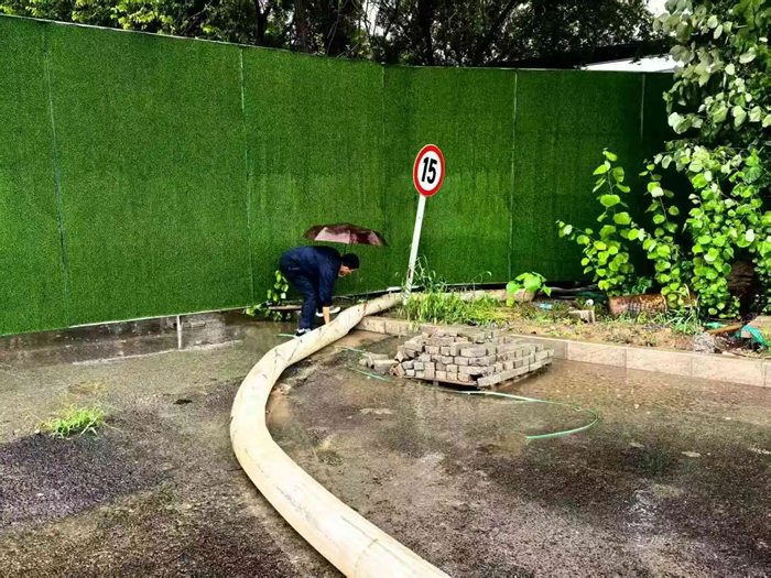 全域排查,織密安全 “防護網”。為有效排查隱患,安保部組織專業人員對園區開展“拉網式”防汛檢查,重點聚焦排水系統、電力設施、?;穫}庫等關鍵部位,清理排水管道雜物,保障雨水排放“主動脈”暢通;細致排查電力設備運行狀態,筑牢供電 “穩定線”;加固?;穫}庫防護措施,嚴防雨水倒灌引發安全風險。對檢查中發現的問題,立即采取整改措施,做到不留死角、不留隱患。