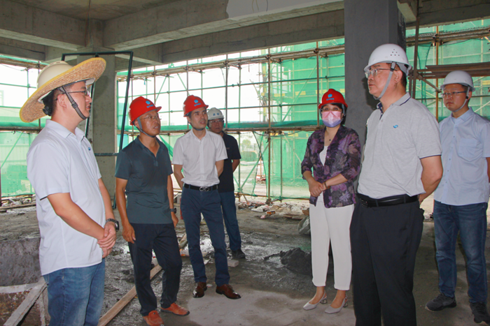 在項目施工現場,陳宇聽取了現場負責人建設進展和工作落實情況的專題匯報,仔細詢問了建設實施、招投標、資金管控、安全管理、工藝優化、屬地政策等重要環節的推進情況,并詳細了解重難點問題。
