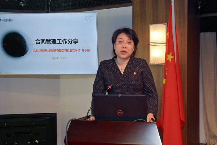 化研院黨總支書記助理李志勇圍繞制度體系建設和內控合規工作,華騰新材黨總支書記齊小麗圍繞合同管理分別作交流發言。