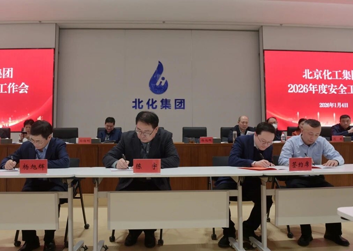 會(huì)上,北京化工集團(tuán)與北京化科、北化生科、華騰新材、化研院、華騰拓展、技師學(xué)院、北搪公司等7家企業(yè)現(xiàn)場(chǎng)簽署了2026年度HSE目標(biāo)責(zé)任書。