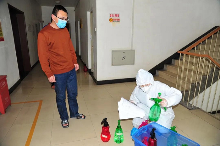 為了合理使用消毒液,華騰化工專門對保安、食堂和物業人員進行消毒液配比培訓,并對消毒液進行專人發放,這一措施不僅節省了消毒液的使用量,而且減少了高濃度消毒液對人員和資產帶來的傷害。