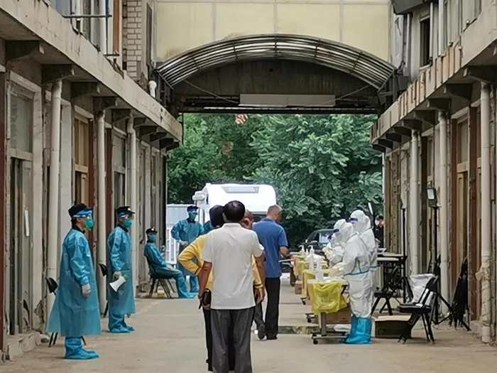 6月23日下午5時,環球橡膠廠作為豐臺區某地區核酸檢測指定場所正式接待核酸檢測人員,至24日凌晨2時,共計檢測1400余人。