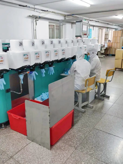 作為醫用手套生產單位黨組織,華騰橡塑瑞京公司黨支部充分發揮戰斗堡壘作用,要求黨員亮身份,并結合崗位職責作出公開承諾,在工作中讓職工群眾監督黨員踐諾成效。正是黨員靠前一步身先士卒,一面面旗幟樹在崗位一線,帶領干部職工有序推進生產經營開展,確保了黨的二十大召開期間醫用手套的高質量穩定供應。